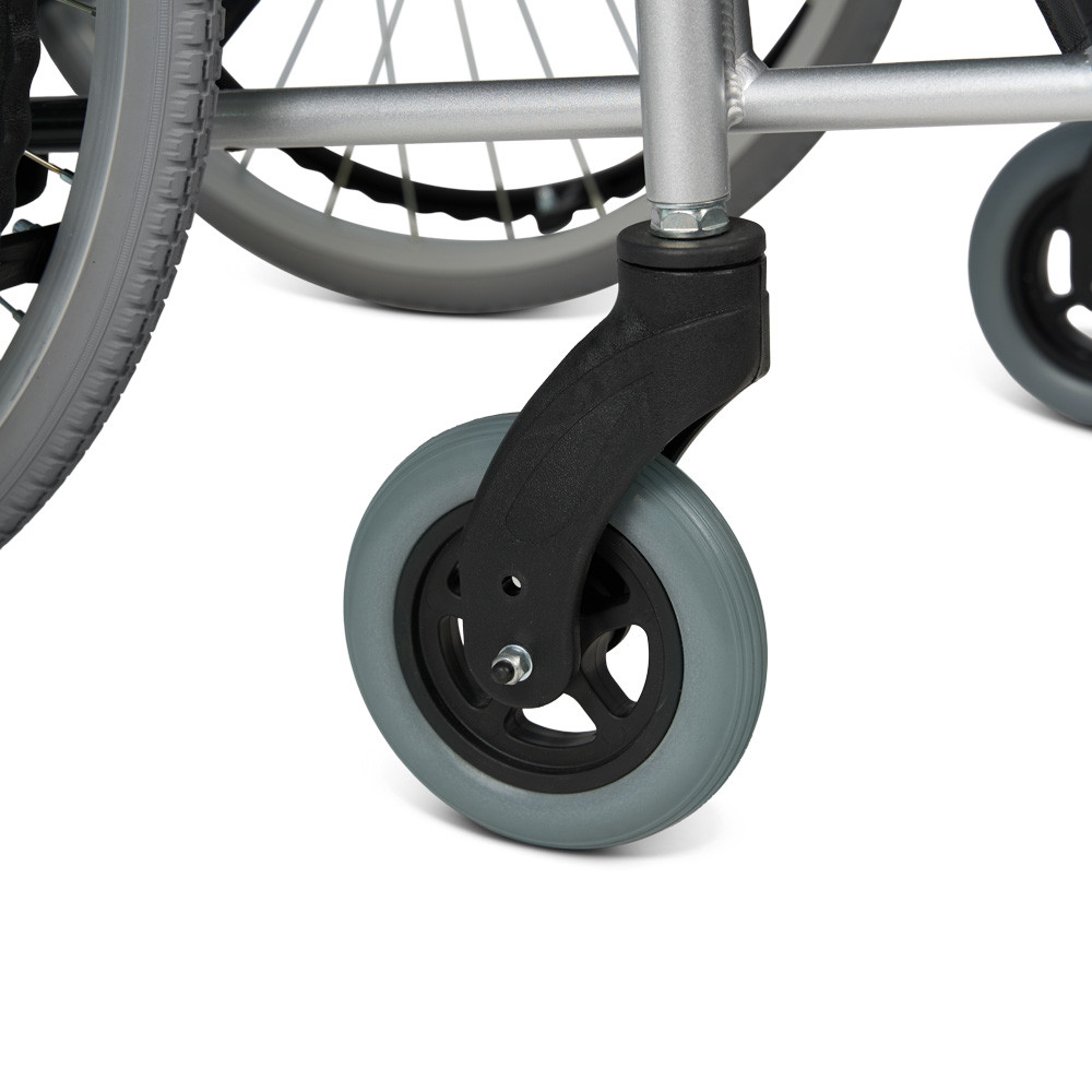 Манёвренные передние колёса облегчают управление коляской. Их литые шины прослужат долго, не требуя особого ухода.