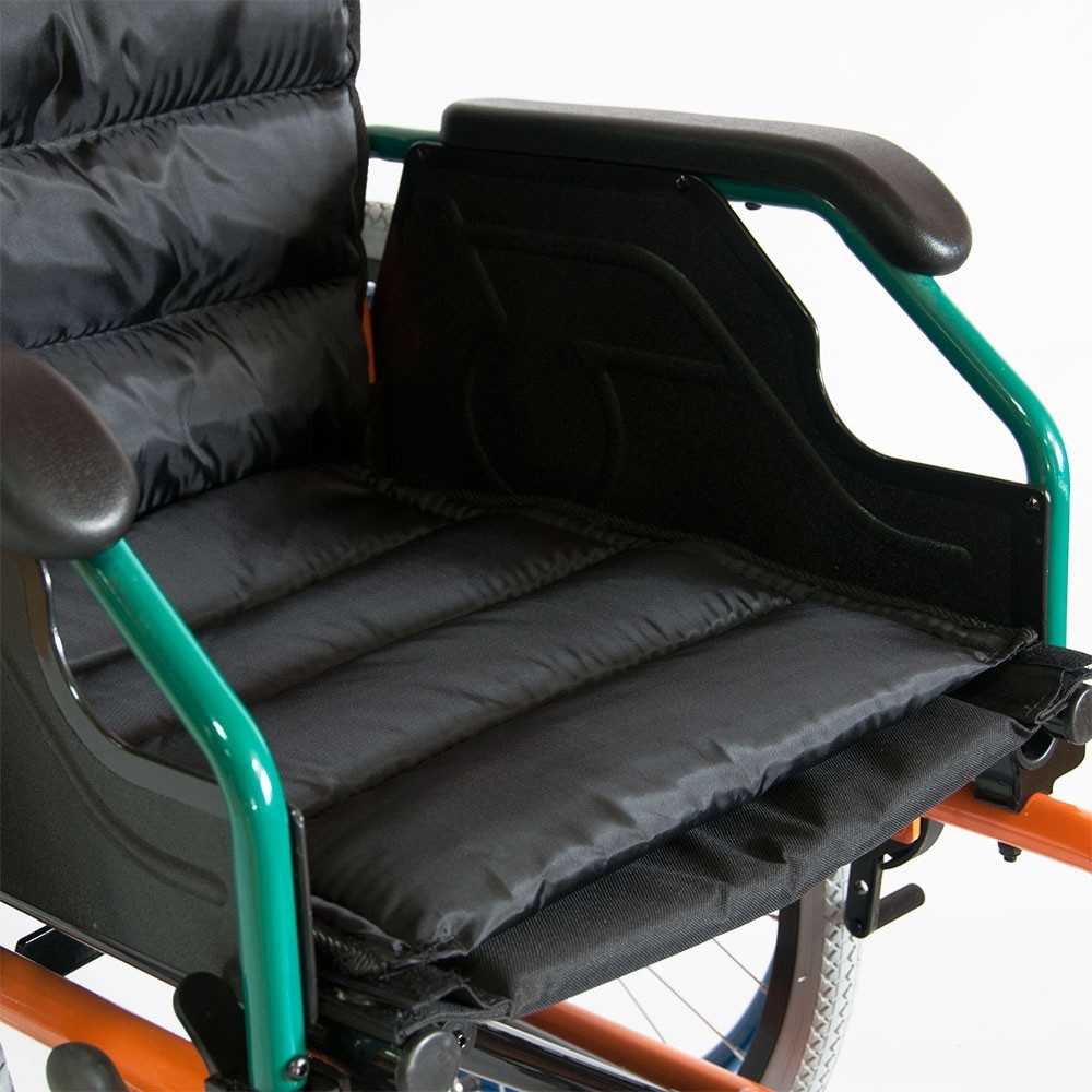 Складная спинка уменьшает габариты кресла-коляски, что удобно для транспортировки и хранения. На задней стороне спинки расположен карман для личных вещей.